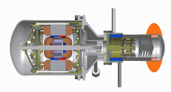 Il motore Stirling è un invenzione ottocentesca, riutilizzata e rivisitata per essere adottata in questo tipo di impianto, la camera di espansione contiene un gas che si dilata con il calore (del sole) e si contrae con il raffreddamento azionando un pistone dotato di una bobina elettrica in grado di produrre energia alternata.